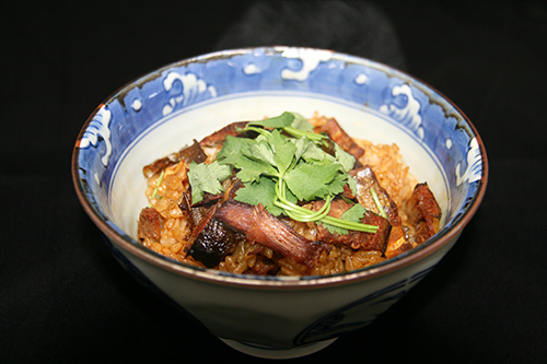 ご飯と蒲焼きのたれを混ぜ合わせ、温めた”鮎のひつまぶしの素”をいれ軽く混ぜ合わせる。