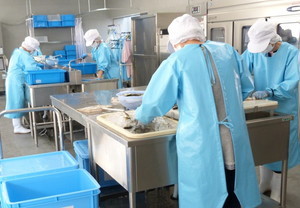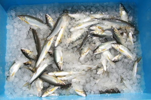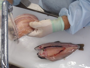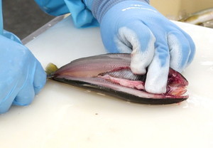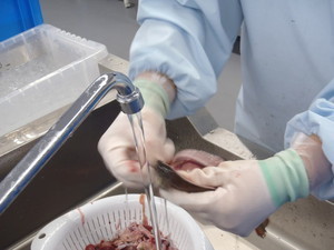 素早く内蔵、えらを取り除き血の臭みを洗い流す