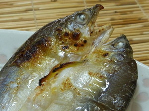 活けあゆとあまごを締めて開き、絶妙な塩加減と紀州南高梅の梅酢で漬け込み、素材本来の風味を生かし、冷風にて干し上げました。